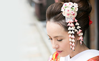 (例 挙式は白無垢、ロケ写真は色打掛)